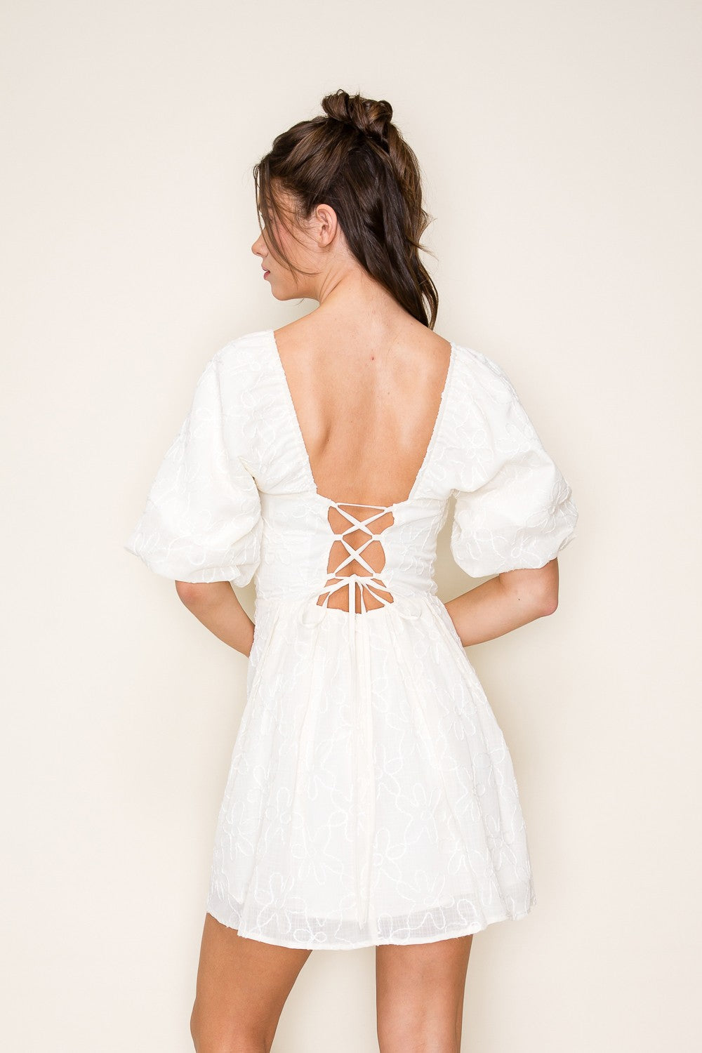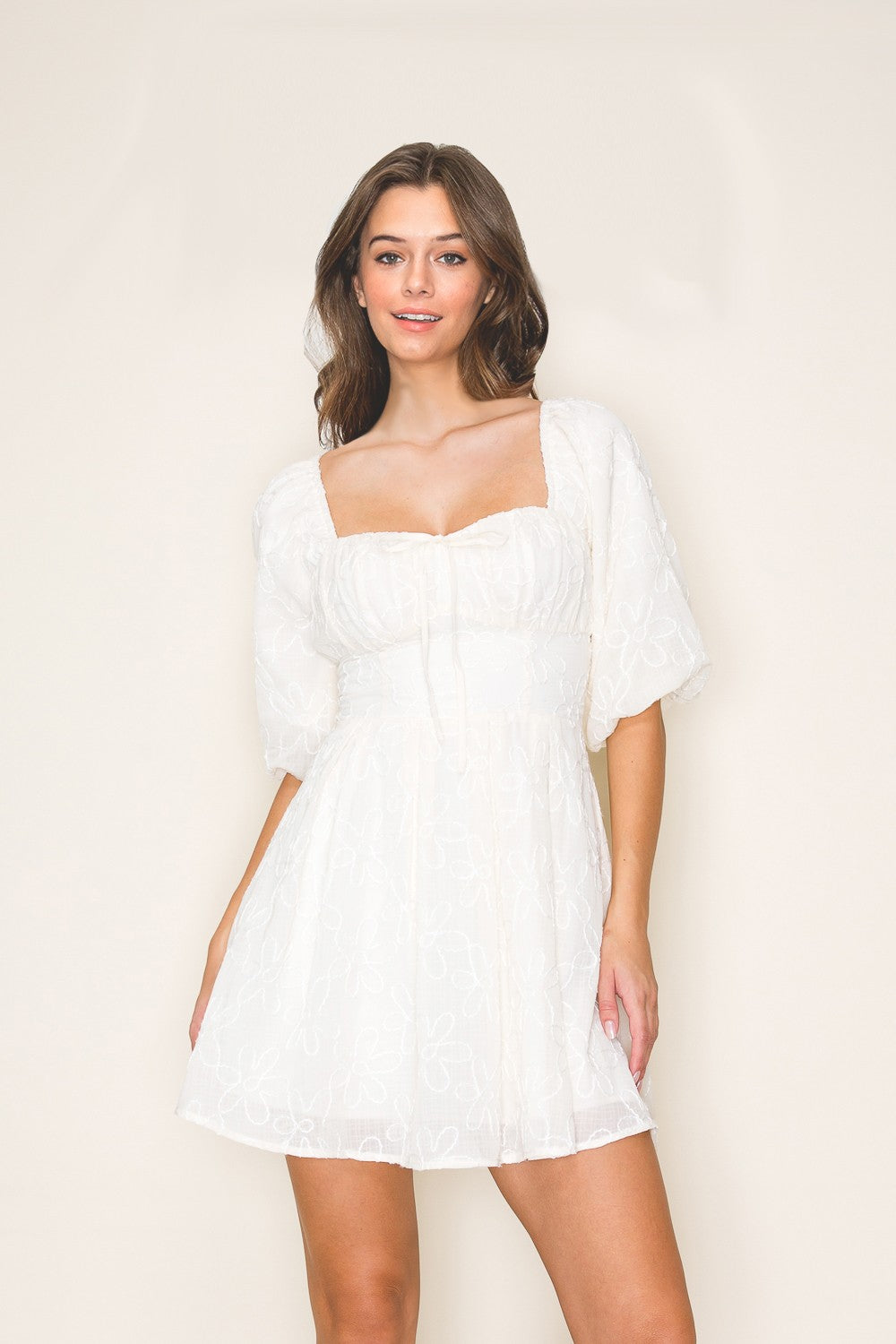 B-RIGHT APPARELTextured Ivory Mini Dress With Bubble Midi Sleeves