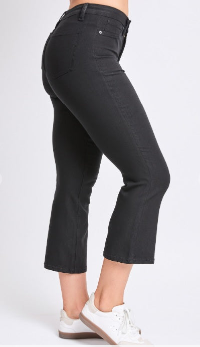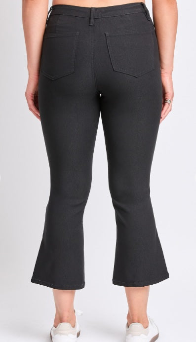 Black Hyperstretch Cropped Kick Flare Pants