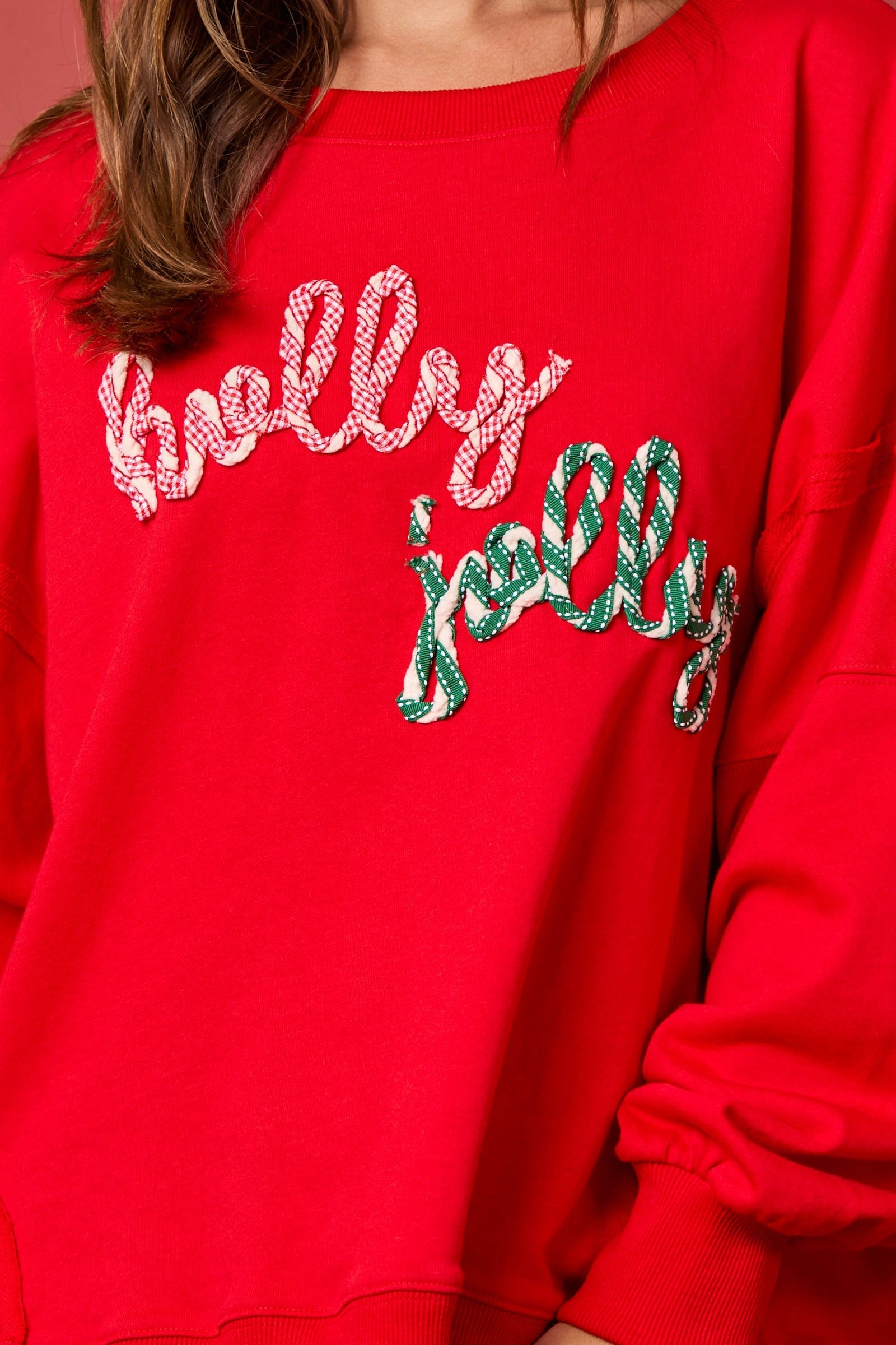 'Holly Jolly' Twist Rope Embroidery Oversized Sweatshirt