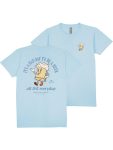 Ice blue short sleeve with the phrases 'It’s a bad day to be a beer' and 'All day everyday'. There is a glass of beer walking and waving with a smile on its face. Simply Southern logo below. Simply Southern logo with dog holding leash in mouth on left chest. 100% cotton. Unisex sizing.