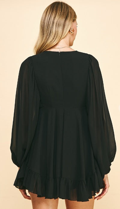 V-NECK WITH TIE STRAPS EMPIRE WAIST BUTTON DOWN TIERED LONG SLEEVES WITH ELASTIC AT CUFFS