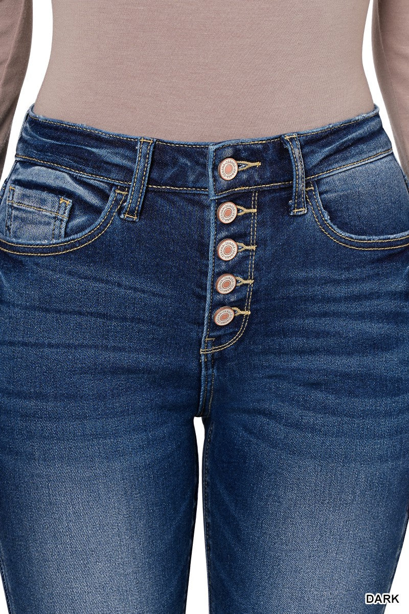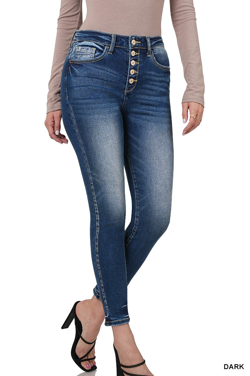 HIGH RISE BUTTON FLY ANKLE SKINNY DENIM PANTS